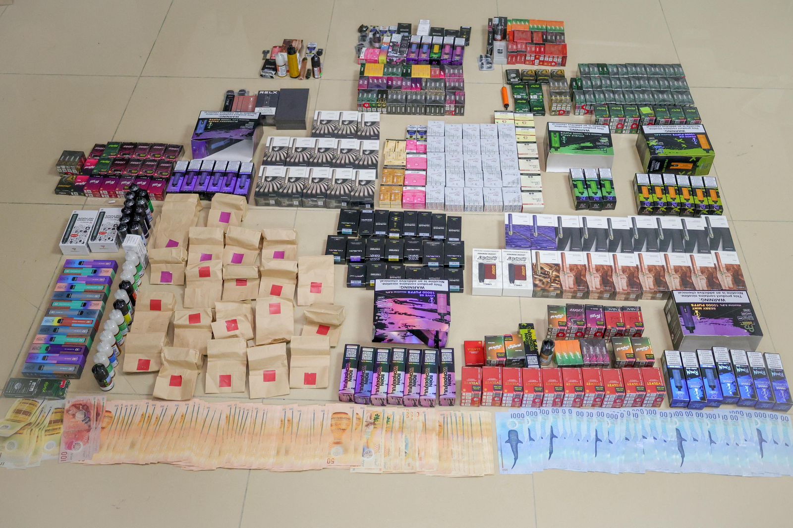 މި އޮޕަރޭޝަނުގައި، އެ ތަނުން އެކަކު ދުއްވި ސައިކަލާއި ބަލައިފާސްކުރި އެޕާޓްމަންޓުތަކުން ގިނަ އަދަދެއްގެ ވޭޕްއާއި މަސްތުވާތަކެތިކަމަށް ޝައްކުކުރެވޭ ތަކެއްޗާއި 111880 ރުފިޔާގެ އިތުރުން ރާއްޖެ އެތެރެކުރުން މަނާ އެހެނިހެން ތަކެތި ފެނިފައިވެއެވެެ.