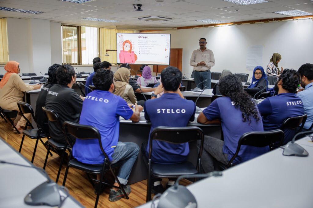 ސްޓެލްކޯގެ މުވައްޒަފުން ކުރިޔަށް ގެންދިޔަ ނަފްސާނީ ދުޅަހެޔޮ ކަމަށް ހޭލުންތެރި ކުރުމުގެ ވޯކްޝޮޕް | ފޮޓޯ: ސްޓެލްކޯ