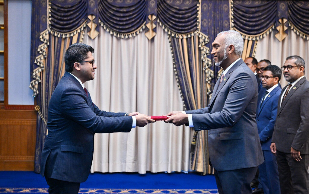 ސްރީލަންކާގެ ސަފީރު، ރައީސުލްޖުމްހޫރިއްޔާއަށް ފަތްކޮޅު އެރުވުމުން، ރައީސުލްޖުމްހޫރިއްޔާ ވަނީ ސަފީރަށް ތަހުނިޔާ ވިދާޅުވެ، ދިވެހިރާއްޖެއަށް ވަޑައިގެންނެވިކަމަށްޓަކައި މަރުޙަބާ ދަންނަވާފައެވެ.