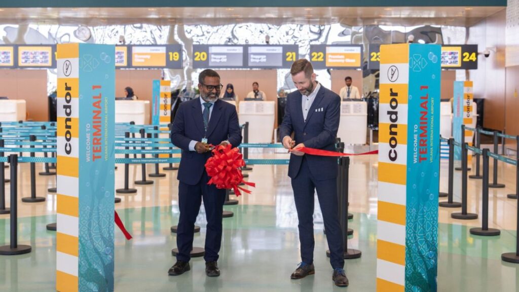 ޖަރުމަނުގެ މި ލެޝާރ އެއާލައިނަށް އައު ޓާރމިނަލްގައި ޚިދުމަތް ދޭން ފެށުމަށް މިއަދު ވީއައިއޭގައި ޚާއްޞަ ރަސްމިއްޔާތެއް ވަނީ ބާއްވާފައެވެ. މި ރަސްމިއްޔާތު ޝަރަފުވެރިކޮށްދެއްވީ، ރޯޑް ޑިވެލޮޕްމެންޓް ކޯޕަރޭޝަންގެ މެނޭޖިން ޑިރެކްޓަރ، އިބްރާޙިމް ނަޒީމްއެވެ.