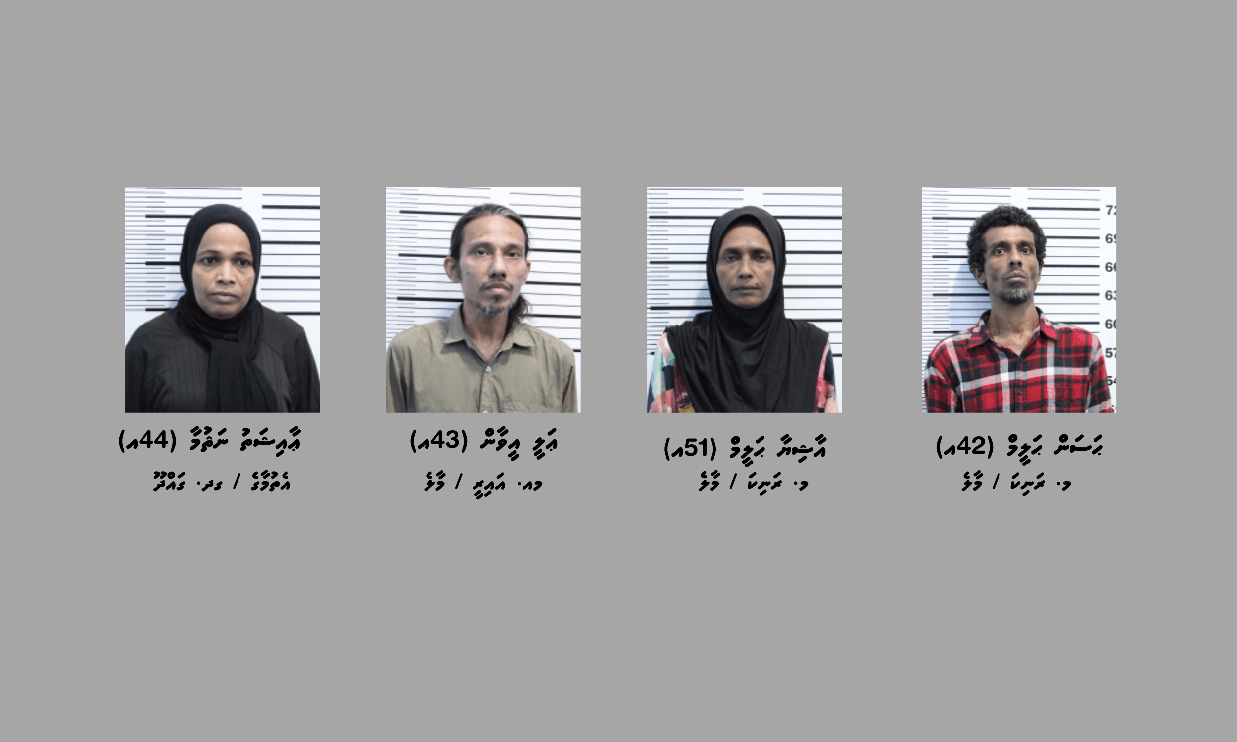 ފުލުހުން ބުނީ މި އޮޕަރޭޝަންތަކުގައި ހައްޔަރުކޮށްފައިވަނީ މއ. ގުލްބަކާގެ / މާލެ، އަޙްމަދު ޒިޔާން (48އ) އާއި ހ. ބްލޫސްކޫޕް / މާލެ، ޒުހުރާ ޢަބްދުއްލަޠީފް (54އ) އާއި މ. ދޮއްތަޑަފިގެ / މާލެ، އިސްމާޢީލް އައިކް މުޙައްމަދު (19އ) އާއި ހ. ހުދުކެލާ / މާލެ، އިސްމާޢީލް ރަޝީދު (53އ) އާއި މ. ރަނިކަ / މާލެ، ޙަސަން ޙަލީމް (42އ) އާއި މ. ރަނިކަ / މާލެ، އާޝިޔާ ޙަލީމް (51އ) އާއި މއ. އައިރީ / މާލެ، ޢަލީ އީވާން (43އ) އާއި އެތުމާގެ / ގދ. ގައްދޫ، ޢާއިޝަތު ނަޘުމާ (44އ) ކަމަށެވެ.